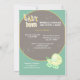 This gender neutral Retro Jazz Baby Shower invitation features a retro style design in green, yellow and grey with pink and blue accents. A baby carriage sporting a Fleur de Lis symbol and a saxophone and musical notes lend a jazzy New Orleans feel to the invitations. Perfect for a couple's baby shower!