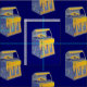 Blue and orange retro jukebox illustration. Seamless pattern. Custom background colour.