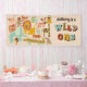 This "Wild One" birthday party banner is perfect for celebrating a baby's first birthday. It features my retro style illustrations of jungle animals with birds, lions, giraffes, zebra, elephants, crocodiles, snakes, monkeys and more in shades of aqua blue, golden yellow, orange, brown and peach are set against a cream coloured background. This banner is ready to be personalised with the name of your one-year-old.