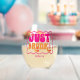 Celebrate the bride-to-be with these trendy and unique stemless wine glasses. This pink and peachy orange "just drunk" retro themed stemless wine glass is customisable with your recipient's name. These make perfect and memorable party favours!