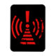 Striking retro-futuristic hazard icon with pulsing red lines and a distressed warning, old-school terminal screen vibes.