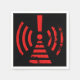 Striking retro-futuristic hazard icon with pulsing red lines and a distressed warning, old-school terminal screen vibes.