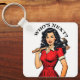 “Who’s Next?” Killer Housewife keychain. Designed in a vintage 1950s pin-up style with a dark humor twist, this keychain features a glamorous retro woman confidently holding an axe with a smile that says everything.