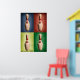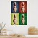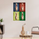 An artistic photograph of four antique Kingpin bowling pins, in a four panel display of textured background. Iconic and Retro bowling pins for the man cave.