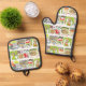Retro Kitchen Cook Book Illustration Bright Green Oven Mitt & Pot Holder Set