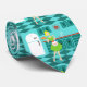 With this Retro Kitchen Neck Tie, you can have your pie and eat it, too. This kitschy, minimalist art drawing features a perfect 1950's housewife, in her mid century modern kitchen. The beautiful baker is wearing a flouncy, green dress and a white apron with red detailing. Not a hair on her blonde head is out of place. In one hand, she is holding the fruit of her labour--a gorgeous, lattice topped, fruit pie. One glance and you'll know that her flaky pie crusts are second to none. She is standing on an aqua and teal chequerboard floor, which is undoubtedly clean enough to eat off of. Against an aqua wall, we see teal cabinetry with aqua trim work, a red countertop, red drawer pulls, and black starburst accents. A red, starburst clock is hanging on the wall. To the side, there is a state of the art, white refrigerator with silver handles. At least, the fridge was state of the art in 1950's. Now, it's just plain dreamy! Whether you're Suzie Homemaker or simply have an affinity for all things vintage, you're sure to love this scrumptious slice of Americana.