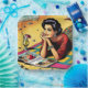 Retro pop art woman in a 1950's style mid century dress drinking a cocktail and day dreaming about fashion reading a magazine at the beach. Fun for a retro birthday party!