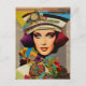Retro Lady Colourful Mixed Media Collage Abstract Postcard