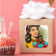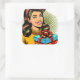 Retro Lady Holding a Birthday Present Square Sticker