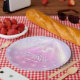 Elegant custom Disco Bachelorette paper plate design in beautiful gradient colours from lavender through periwinkle and pink with a funky disco ball, glamourous retro font and a sparkling disco lights background. This stylish, sophisticated design is easily adapted to any special dinner and/or dance event. Search ID928 to see other products in this trendy collection.