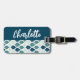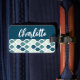 Retro Leaf Pattern Blue Green Monogram Luggage Tag