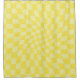 Retro Lemon Yellow Checks Warped Chequered Shower Curtain