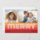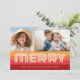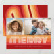 Front - Unconventional Christmas design with a 70s vibe. A large Merry Greeting in a funky font with a background or shades of rust and orange. 2 Photos can be included on this design.