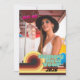 Send all the retro vibes this new year with this design! Features thick retro style color lines paired with a custom 80's typesetting that says "Happy New Year". Muted Earthen tones and light teal color scheme. The back features a flood of hot pink with a complimentary set of color stripes that match to the front of the card. Send 'em off into the new year like its 1985!