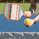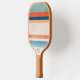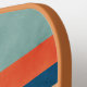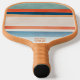 Pickleball paddle with retro lines in orange and blue colours. Double-sided and personalised with a name, phone, initials, monogram, or any custom text on one side. Features a white ombre gradient at the bottom to make the custom text stand out and give it a more unique look.