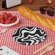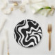 Retro Liquid Swirl Abstract Pattern Black & White Paper Plate