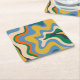 Retro Liquid Swirl Abstract Pattern Blue Mustard Square Paper Coaster