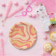 Retro Liquid Swirl Abstract Pattern Pink Yellow Paper Plate