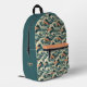 This backpack features a wave design with dusty teal green and dark peach vintage colours that's inspired by the famous Katsushika Hokusai's Under the Wave off Kanagawa painting. The lovely swirls of seafoam green is offset by foamy bits of dark peach (light rust). The pocket has a matching dark peach, and the sides have a complementary dark teal green. Your initials appear on the left side (as you are looking at the backpack). Make sure to type the text you want to replace the placeholder initials, or if you don't want initials, delete the text.