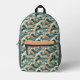 Retro Look Green Japanese Inspired Waves Monogram Printed Backpack