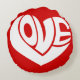 © 2022 Socialite Designs Inc. Our retro and groovy heart-shaped love text / typography design pillow is a wonderful design for a home with love. Change the background colour to match your home decor..