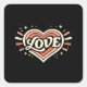 Retro Love Heart Valentine Classic Square Sticker