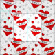 Romantic retro love hearts pattern featuring big red hearts, with scrolls and the word LOVE. Among the hearts are arrows and stars.