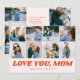 Retro Love You Mom 12 Photo Collage Pink Holiday Card