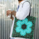 Retro Mandala Flower Blue and Green Tote Bag