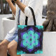 Retro Mandala Flower Blue Purple and Green Tote Bag