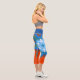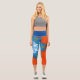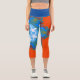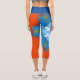 Retro Mandala Flower Orange White and Blue Capri Leggings