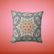 Retro Mandala Flower Tan Blue and Orange Cushion