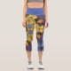 Retro Mandala Flower Yellow and Blue Capri Leggings