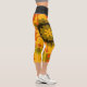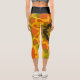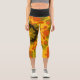 Retro Mandala Flower Yellow and Orange Capri Leggings
