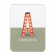 Modern design that's a little retro / vintage too, featuring large retro style theatre marquee bulb letter A, with customisable text below