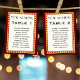 Dark red / burgundy retro cinema movie theatre marquee sign wedding seating chart & table number card with guest names. Personalise the text with the names of your guests. Great for a vintage wedding look and feel.