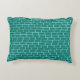This Retro Martini Couple Accent Pillow looks like a scene out of a romantic comedy. The setting of this 1960's style, minimalist art design is an elegantly decorated, mid century modern house or apartment. The cast is an attractive couple enjoying an evening filled with sparkling conversation, good music and bottomless drinks. The room features a green floor, and an aqua and teal brick wall. Resting comfortably in a mod, orange egg chair is a beautiful woman. Her bright pink dress is just short enough to show off her shapely gams. With the wave of a hand, this blonde beauty has the immediate attention of her male admirer. Her fair haired companion is wearing a blue suit, white shirt and black bow tie. In his hands, he is holding two, crystal martini glasses with floating olives. Don't worry. He's offering one to his lady friend. The pair is having such a delightful time that neither is taking notice of the hour showing on the kitschy, red, starburst clock on the brick wall behind them. On a recessed fiery red wall, there are three Classic Movie Martini Stretched Canvas Prints, also available from StrangeLittleOnion's Zazzle store (hint, hint!) Two of the prints feature turquoise backgrounds and one is on a dramatic black background. Centred beneath the prints is an elegant wet bar. The front of the teal bar has three harlequin diamonds, in shades of orange, turquoise and green. We can see the silhouettes of martini glasses resting on the counter top. Across the room, an orange ottoman is holding a blue and black, portable record player. On the floor, we see the vinyl records and a bright yellow album cover. This attractive duo is having such a delightful time that neither is taking notice of the hour showing on the kitschy, red, starburst clock on the brick wall behind them. The opposite side of this fun throw pillow features a teal and aqua brick pattern.
