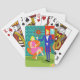 These Retro Martini Couple Playing Cards look like a scene out of a romantic comedy. The setting of this 1960's style, minimalist art design is an elegantly decorated, mid century modern house or apartment. The cast is an attractive couple enjoying an evening filled with sparkling conversation, good music and bottomless drinks. The room features a green floor, and an aqua and teal brick wall. Resting comfortably in a mod, orange egg chair is a beautiful woman. Her bright pink dress is just short enough to show off her shapely gams. With the wave of a hand, this blonde beauty has the immediate attention of her male admirer. Her fair haired companion is wearing a blue suit, white shirt and black bow tie. In his hands, he is holding two, crystal martini glasses with floating olives. Don't worry. He's offering one to his lady friend. The pair is having such a delightful time that neither is taking notice of the hour showing on the kitschy, red, starburst clock on the brick wall behind them. On a recessed fiery red wall, there are three Classic Movie Martini Stretched Canvas Prints, also available from StrangeLittleOnion's Zazzle store (hint, hint!) Two of the prints feature turquoise backgrounds and one is on a dramatic black background. Centred beneath the prints is an elegant wet bar. The front of the teal bar has three harlequin diamonds, in shades of orange, turquoise and green. We can see the silhouettes of martini glasses resting on the counter top. Across the room, an orange ottoman is holding a blue and black, portable record player. On the floor, we see the vinyl records and a bright yellow album cover. This attractive duo is having such a delightful time that neither is taking notice of the hour showing on the kitschy, red, starburst clock on the brick wall behind them.