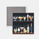 This retro inspired magnet will look great on your fridge! It brings that stylish touch of 60's illustration to your kitchen. Would make a unique, one of a kind house warming gift for those who love adding something a bit different and eye catching to their world! The design features a variety of liquor bottles, martinis, and other cocktail shapes and sizes. Elegant, fun and entertaining!