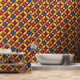 Bold colourful retro star geometric pattern. Bright shades of yellow, orange, red, pink, blue and lavendar. Retro yet still modern this bold pattern is perfect for accent walls of maximalism and maximalist decor. Peel and stick wallpaper lets you upgrade your small space home decor and personalise your rental with your unique design aesthetic. No more boring white boxes!