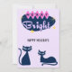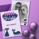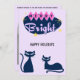 A fun retro-inspired Midcentury Modern design featuring a "Merry and Bright" billboard in various shades of pink and purple with cats on a lavender background. Personalize the Christmas card with your favorite festive photo and a personal message, and send it out to your family and friends. Please note that we put a black and white filter on the placeholder photograph to complement the design. You can remove the filter in the edit menu. You may also change the colors of the graphics if pink and purple are not your vibe
