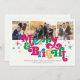 These cute 7" x 5" photo holiday greeting cards feature the bright and colourful retro greeting, "Merry & Bright," in magenta, green, yellow and blue with placeholders for three of your favourite photos.