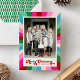 Bright, festive rainbow stripes with a retro font and back design create the perfect pink Christmas holiday photo greeting card! Add your photo on the front and there's an option to either use the existing artwork or add more on the back, too. Customise or edit further clicking the "customise further" link and use the design tool to modify this template. Need help personalising? Message me!