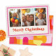 Retro Merry Christmas Pink Rainbow Frame 3 Photo Holiday Card