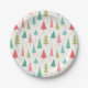 Retro Merry Christmas Trees Fun Holiday Pattern Paper Plate