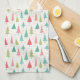 Retro Merry Christmas Trees Fun Holiday Pattern Tea Towel
