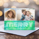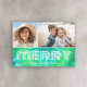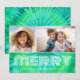 Retro MERRY - Tie-Dye Teal - 2 Photo - 70s Vibe Holiday Card