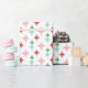 This patterned wrapping paper features a retro styled diamond in red, pink, green and light blue.