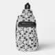 This personalised sling bag has a retro mid century crossword puzzle with retro atomic symbols, starbursts and news print texture. A great pattern for anyone that loves mid century modern atomic designs or crossword puzzles. You can make the pattern on this sling bag larger or smaller. Or take off the colour blocking and name for bulk order for a small store order.