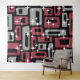Colourful Retro Mid Century Modern Abstract Pattern in Black Grey & Red.